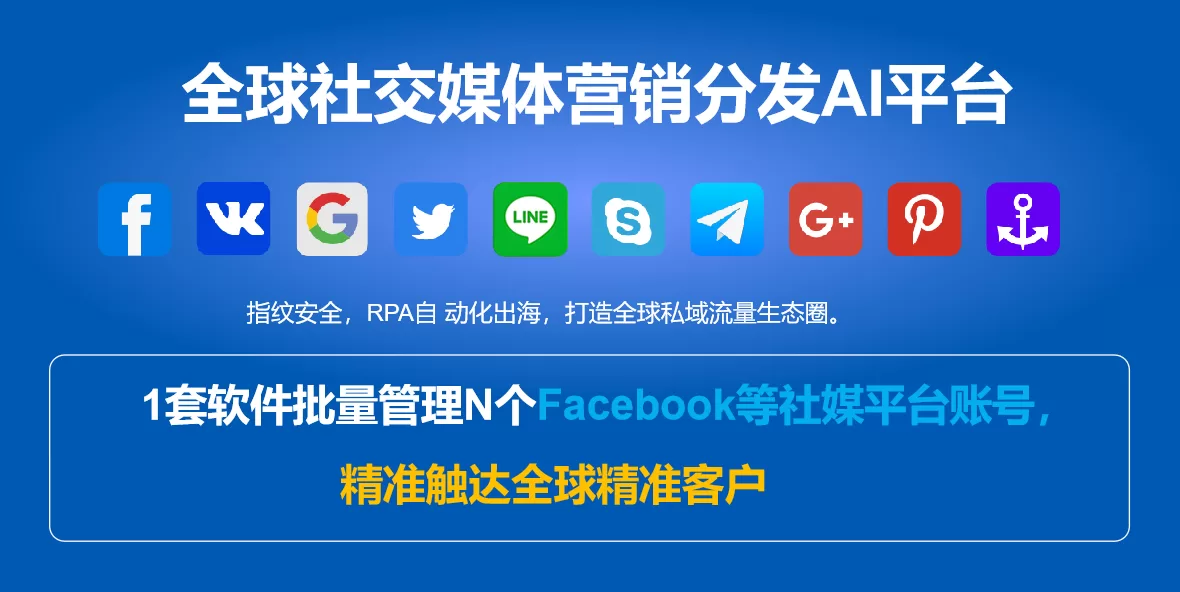 1套软件批量管理N个Facebook等社媒平台账号,精准触达全球精准客户。